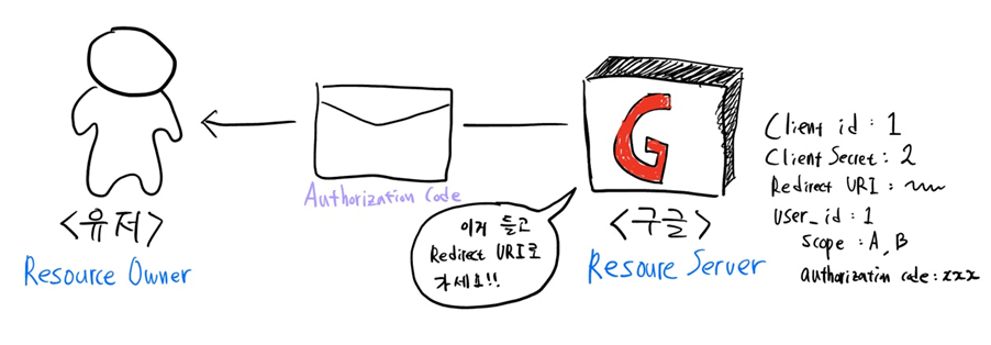 - 이를 통해 Client도 Resouce Owner가 Resource Server로부터 전달받은 Authorization code를 알게 됨