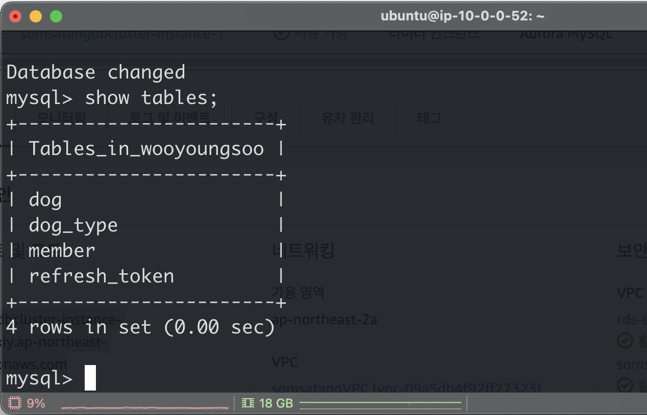 이렇게 하면 로컬에서 Private Subnet에 있는 RDS로 create등의 쿼리를 작성해 날릴 수 있다. 그러나 "얘를 로컬에서 돌리고 있는 스프링부트와 어떻게 연결하는가"가 숙제. 스프링부트에서 만들어지는 쿼리를 터미널에 인풋으로 주도록 내가 직접 구축을 해야 하나..? 그건 너무 에바같은데..
