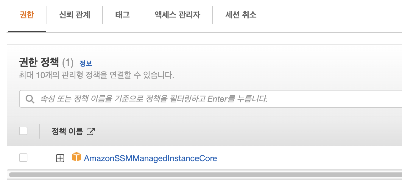 5. EC2를 띄우고, 그 EC2에 AmazonSSMManagedInstanceCore라는 정책이 있는 역할을 부여한다