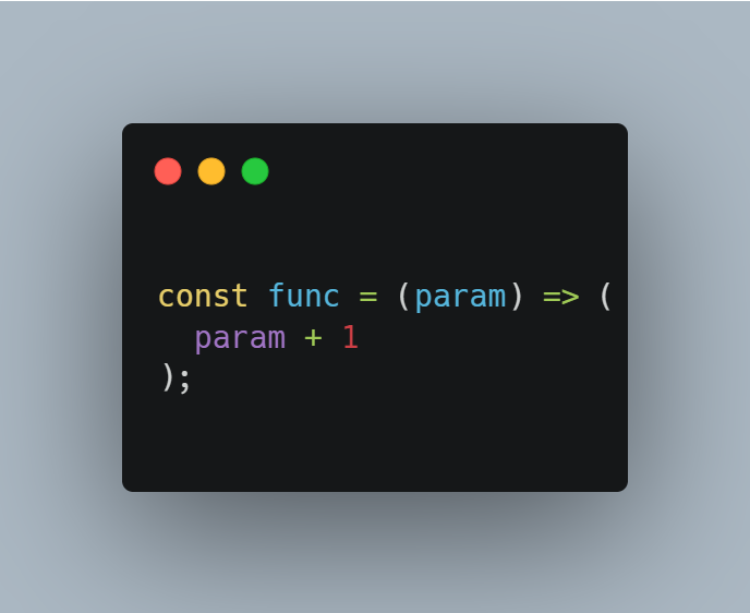 내용이 return문 한 줄이면 중괄호와 return 생략 가능, 그러나 return되는 것이 '객체'라면 소괄호로 감쌀 것(객체임을 명시적으로 알려주는 역할을 한다)