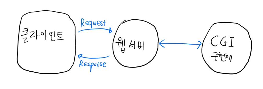 이걸 위해서 CGI가 등장했다. Common Gateway Interface약자로, 웹서버와 앞서 말한 웹 어플리케이션 프로그램 사이의 규약(인터풰이스)이다. C, PHP등으로 요놈의 구현체를 만든다. 이 구현체들은 결국 쉽게 말해서 동적 데이터를 처리해주는 놈, 즉 웹 어플리케이션 프로그램이다.