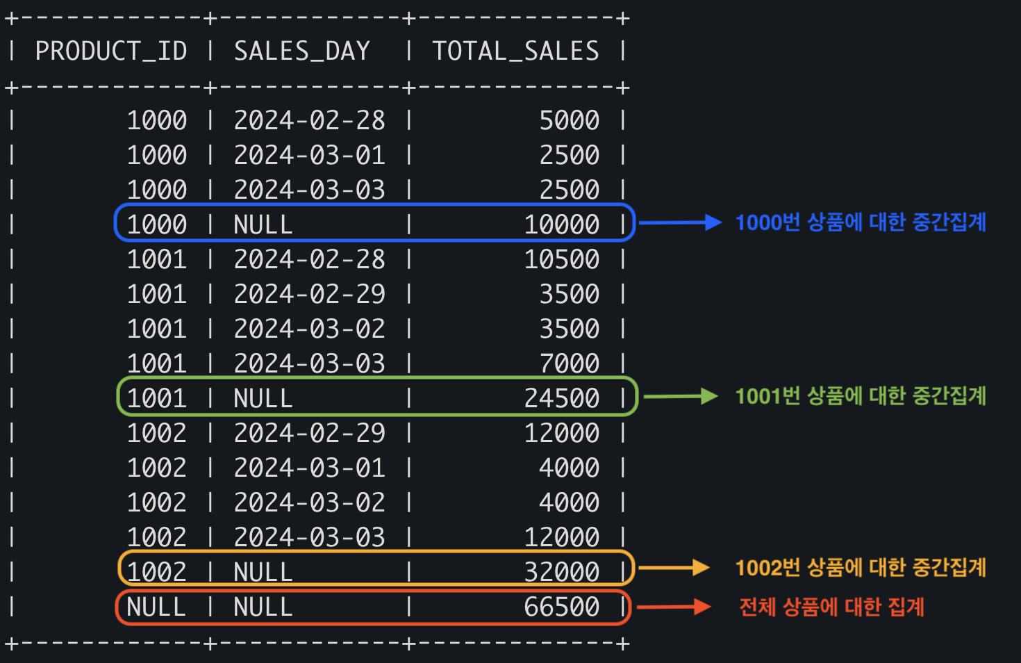 | [MySQL] WITH ROLLUP을 활용한 그룹별 중간 집계 산출법 (0) | 2024.03.03 |