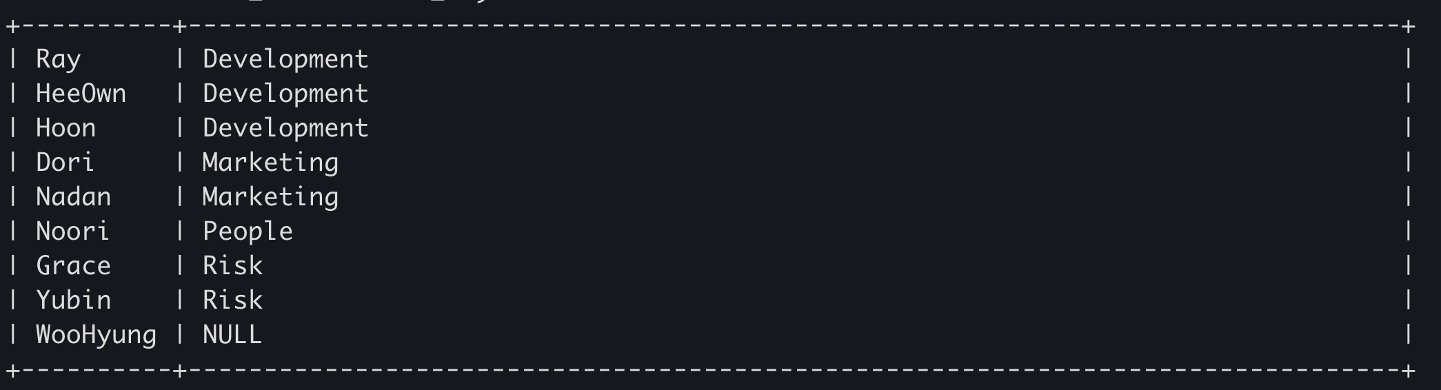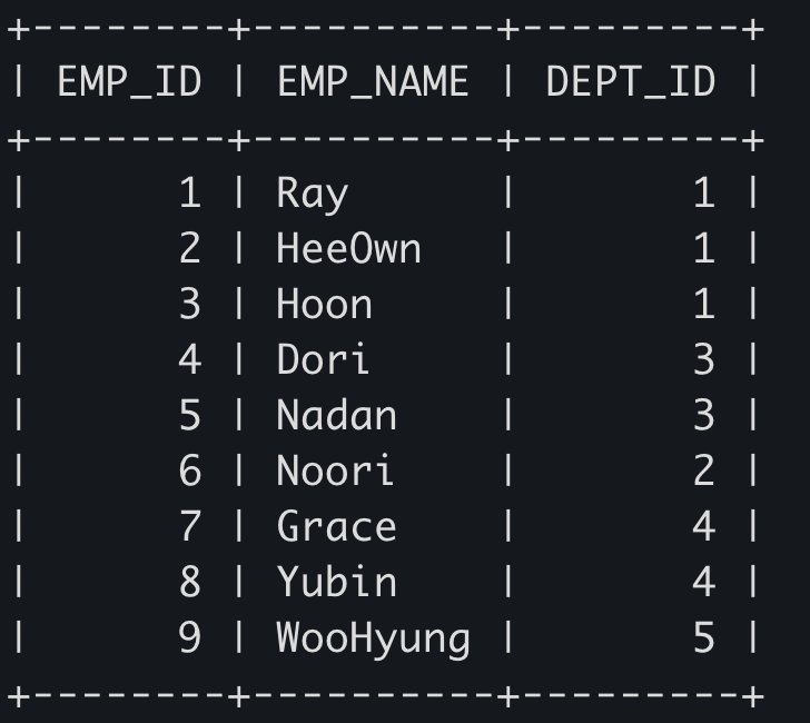 실제 예제를 통해 보겠습니다. 현재 employees 테이블에 다음과 같은 레코드가 있습니다.