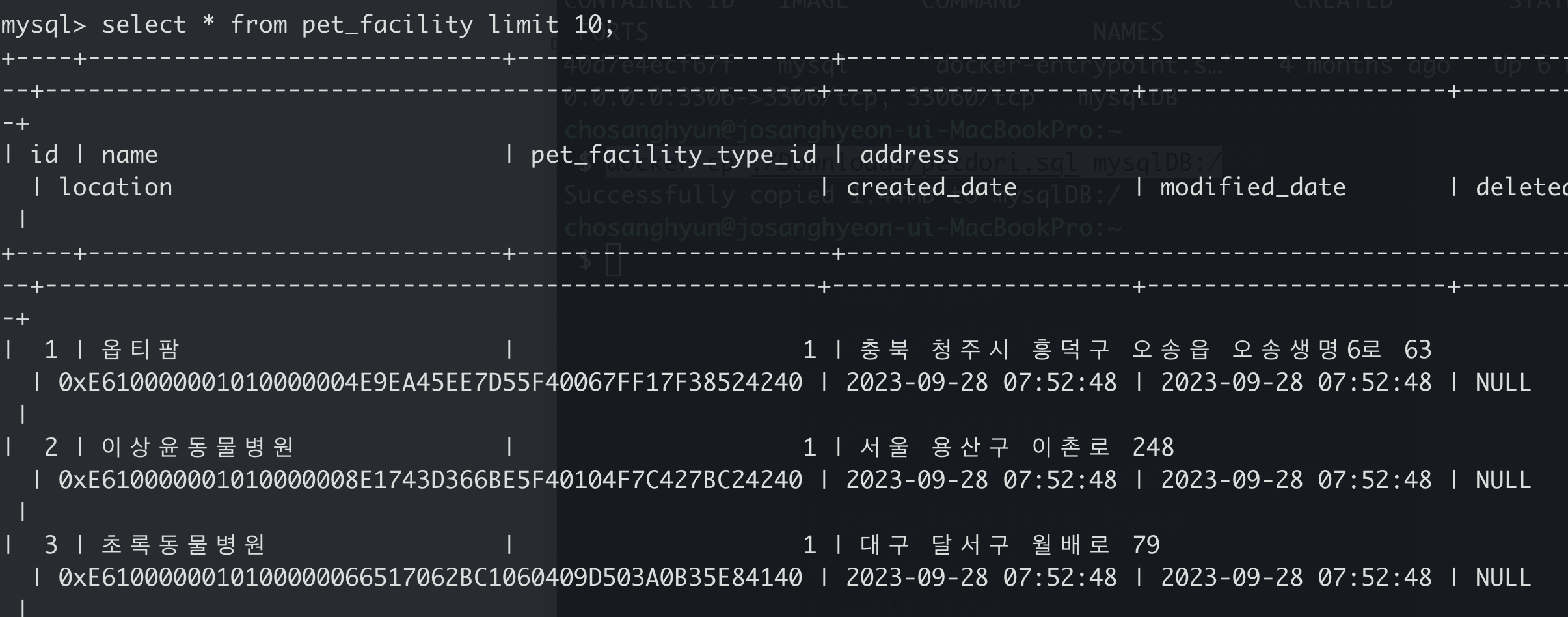 다음과 같이 RDS상에 있던 테이블과 내용물들이 잘 들어가있는 걸 볼 수 있었다!