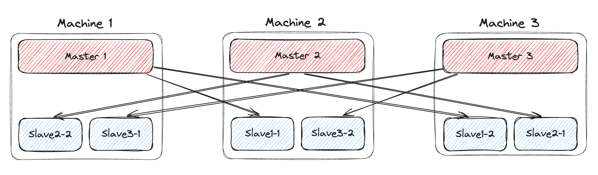 샤딩을 통해 데이터들을 분할해서 각 Master 서버에 저장하기 때문에 하나의 서버라도 다운되면 데이터 유실이 생기지 않을까라는 생각을 할 수 있으나, 위 그럼처럼 클러스터를 구성하면 아무리 Master들이 다운되도 하나의 서버만 살아있다면 정상적인 운용이 가능하다.