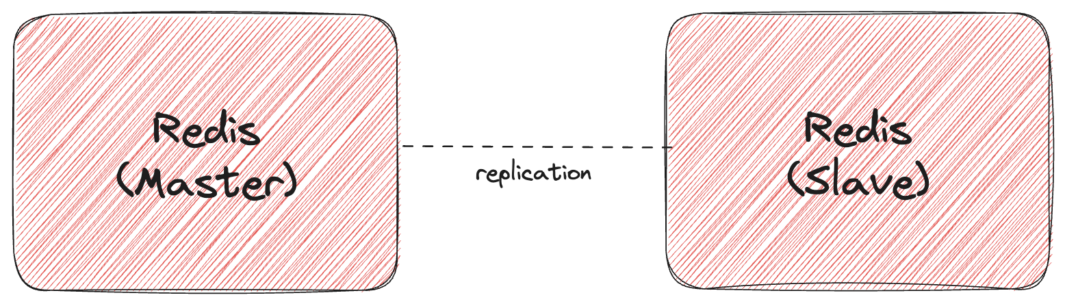 Redis 서버 2대로 아키텍처를 구성하는 것을 말하며, Slave는 Master의 데이터를 실시간으로 전달받아 보관한다. Master가 다운될 시 Slave를 FailOver시킬 수 있으나 수동으로 직접 해줘야 한다. Slave를 하나가 아닌 여러 개를 둘 수도 있다.